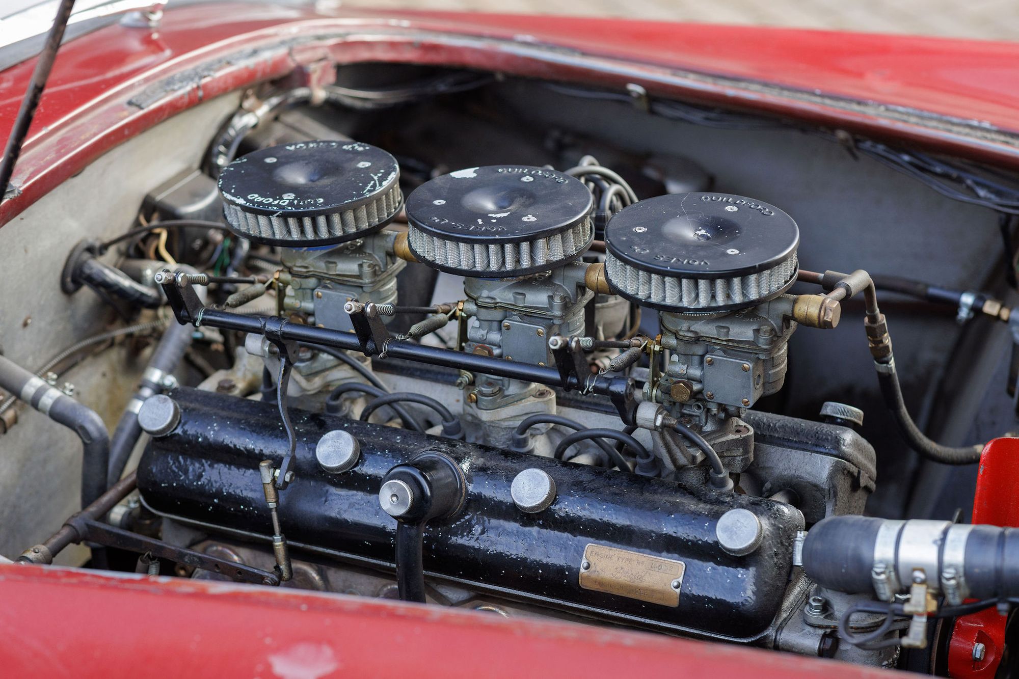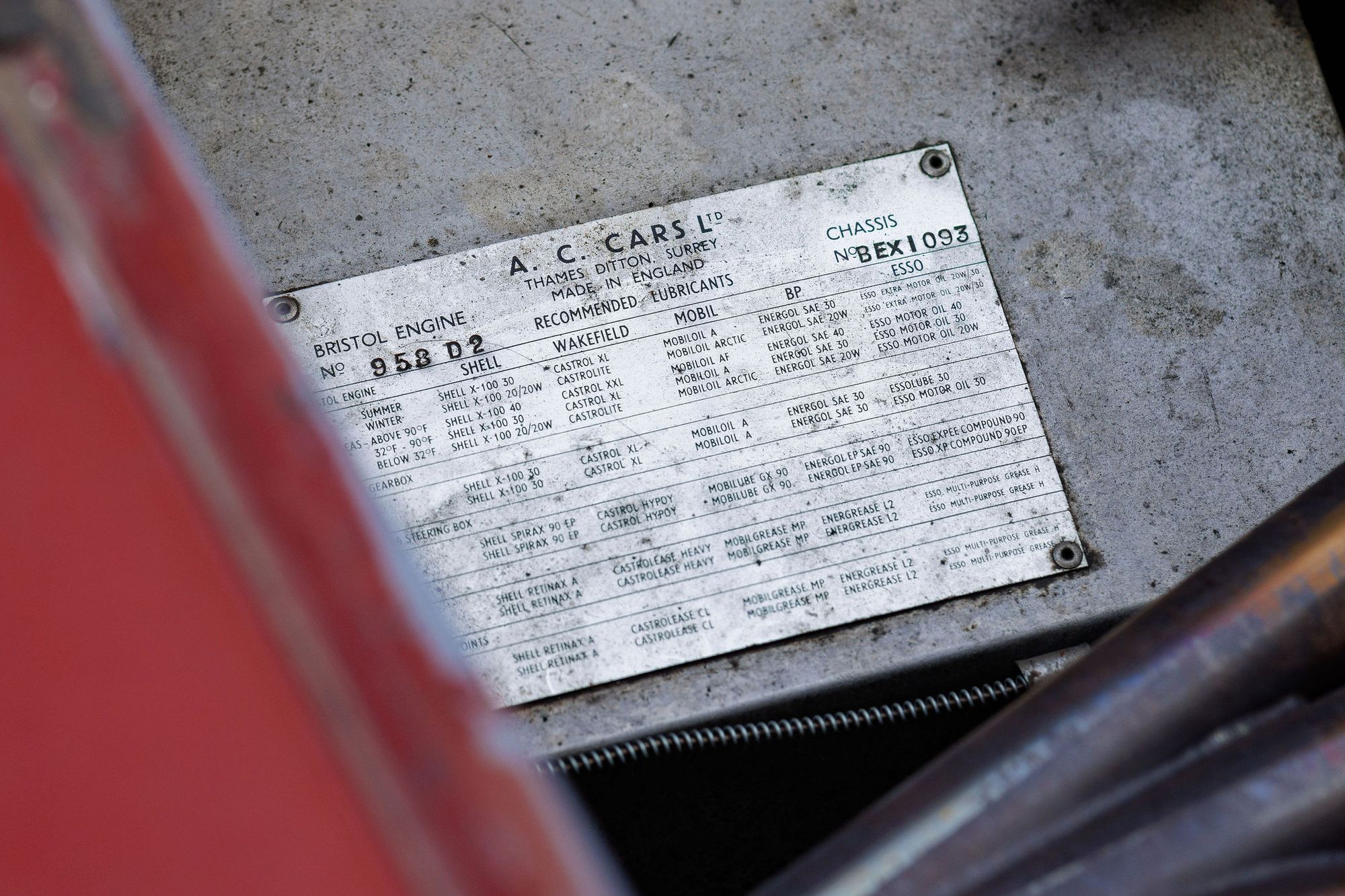 Ordered in Rouge Iris (code 1155) and Brown leather (code VM 3425) with black hood and tonneau cover BEX 1093 left Thames Ditton Works to London Docks on 21 July 1959, dispatched to Imperial Motors Ltd, Chicago, Illinois to its first owner, the sports car enthusiast and real estate developer, Frank C Rand III of 240 Green Bay Road, Hubbards Woods, Illinois.