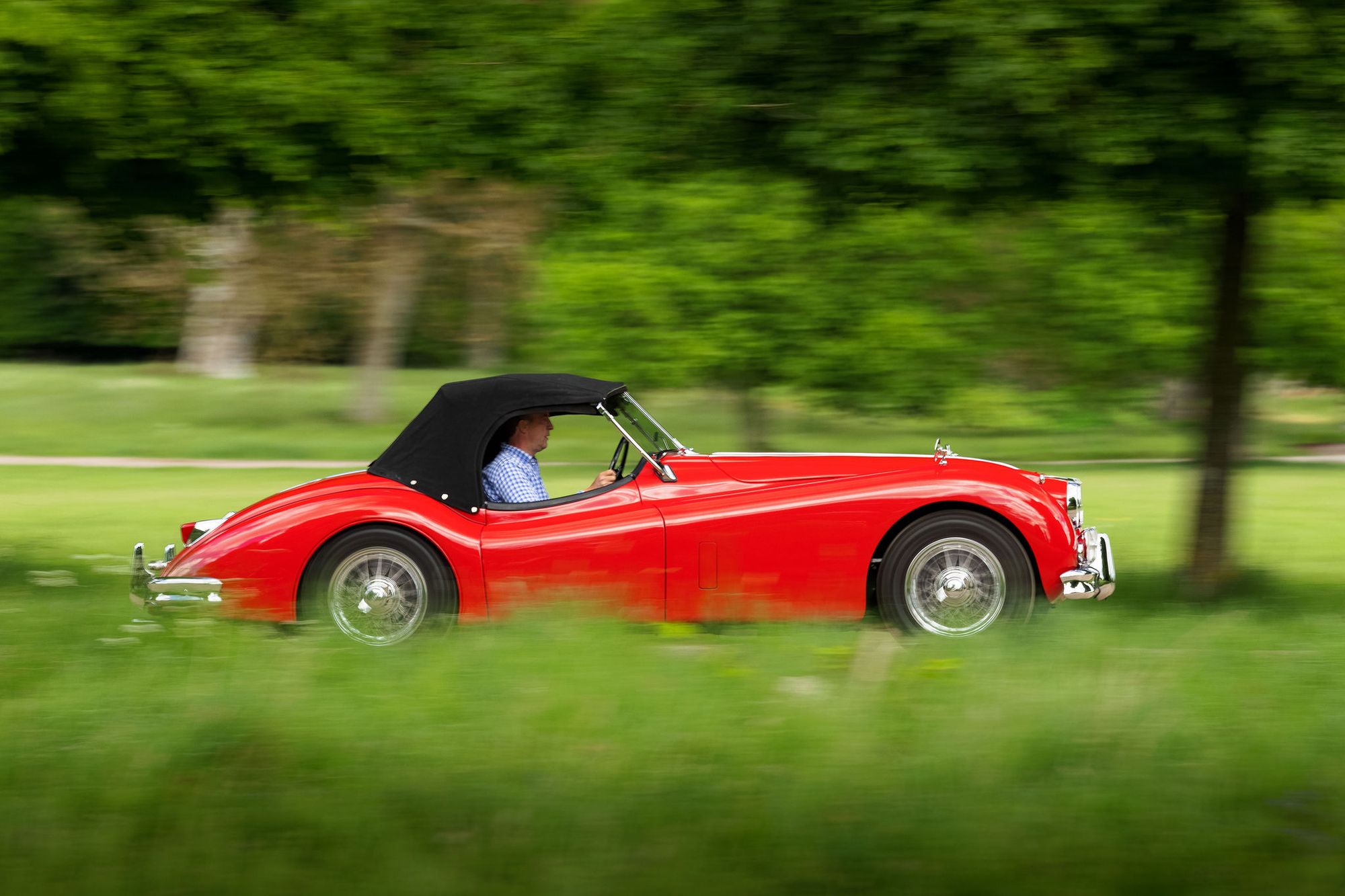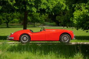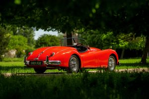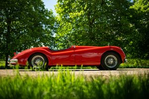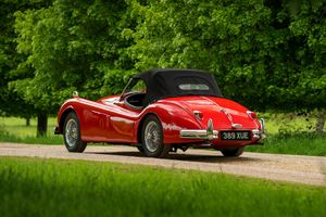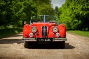 One of only 74 examples built in RHD, this outstanding Jaguar XK 140 open two seater (OTS) is further desirable by being one of just 36 supplied with the Special Equipment option. In addition to the SE specification, it was also completed with the C-Type head and carburettors, considerably raising the engine power from 190 bhp to 210 bhp. Other noticeable additional extras from the SE package were twin exhausts, wire wheels with knock on hubs, twin fog lamps, high speed crankshaft damper and windscreen washers.